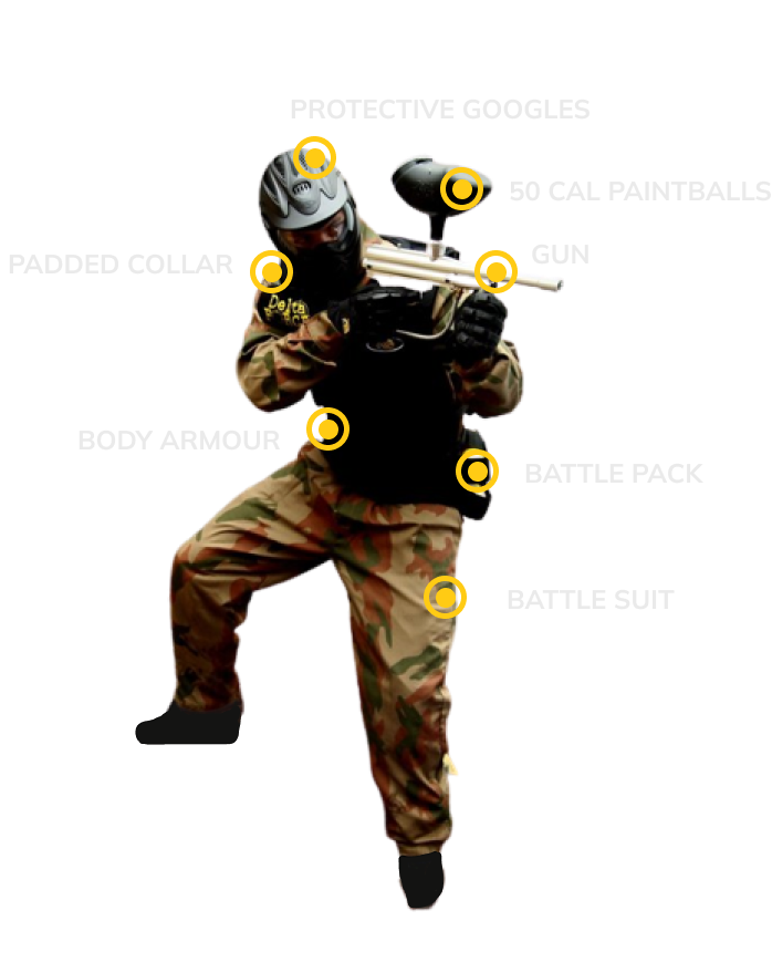 Blend in with our paintball armour body suit! Our full-length camouflage paintball armour body suit comes in a range of sizes and will protect your civilian clothes from the rigours of battle. They have been custom-made just for Delta Force to provide you with maximum comfort for your paintball experience with us. The body suit…